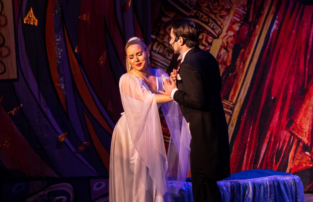Первый акт довольно светлый и лёгкий, в нём очерчивается круг взаимоотношений персонажей. Заканчивается он трагично: фантом сбрасывает на сцену люстру, и это намёк на то, что дальше всё будет только хуже. Второй акт намного драматичнее, в нём происходит конфликт Кристин и Эрика, обнажившего по её просьбе лицо. В нём и одна из самых трогательных сцен в спектакле — дуэт отца и сына, бывшего управляющего и фантома. Они наконец-то воссоединяются, но, увы, ненадолго, лишь для того, чтобы расстаться уже навсегда: фантом умирает, получив первый и последний в своей жизни поцелуй от Кристин.
